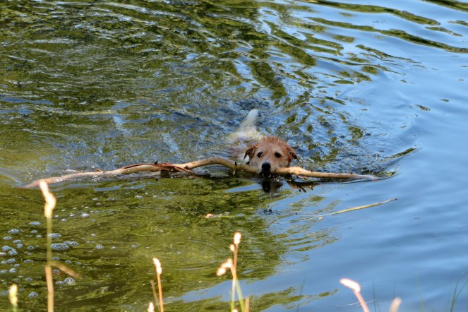 With the temperatures reaching into the 30s the past couple of weeks, Finn is grateful for a swim in the stream.